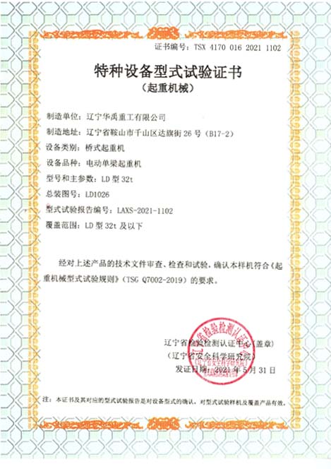 LDP电动单梁型式试验合格证